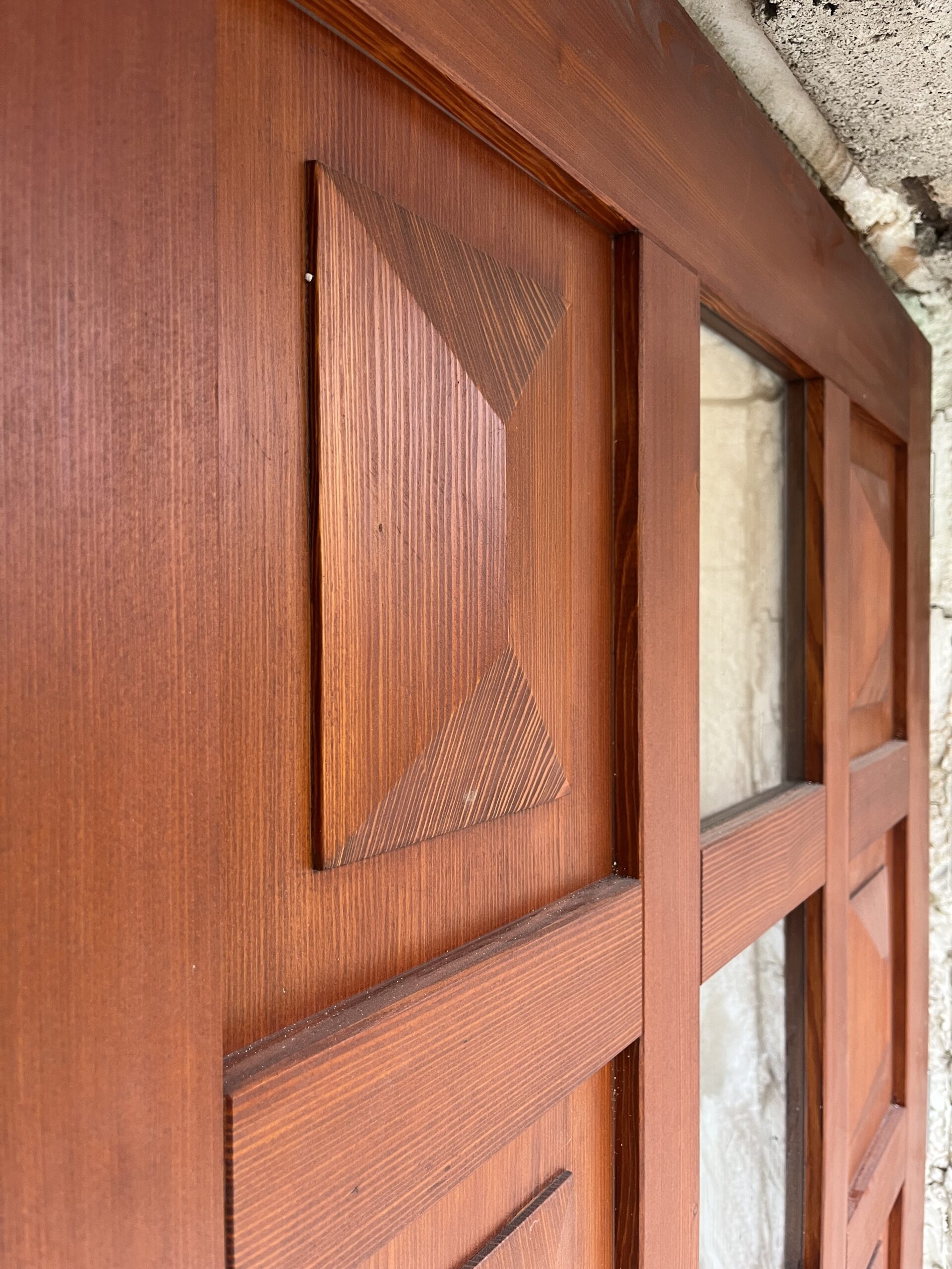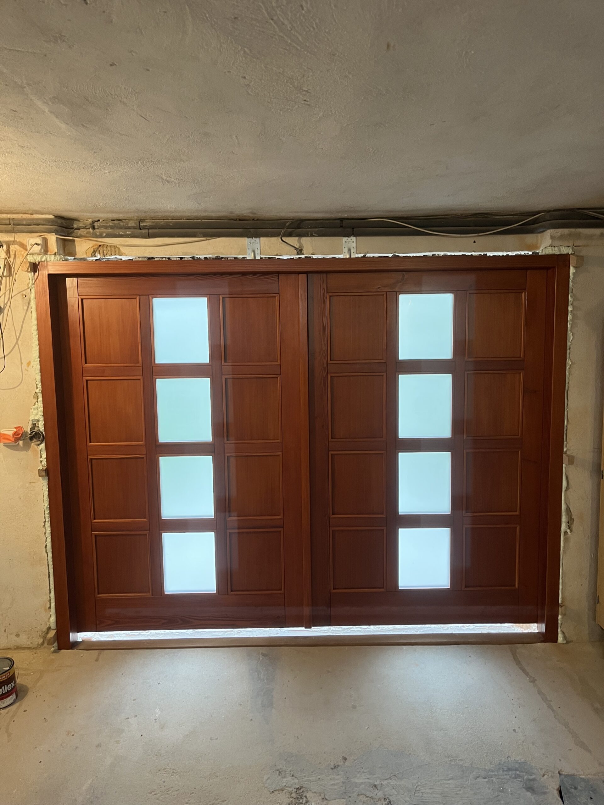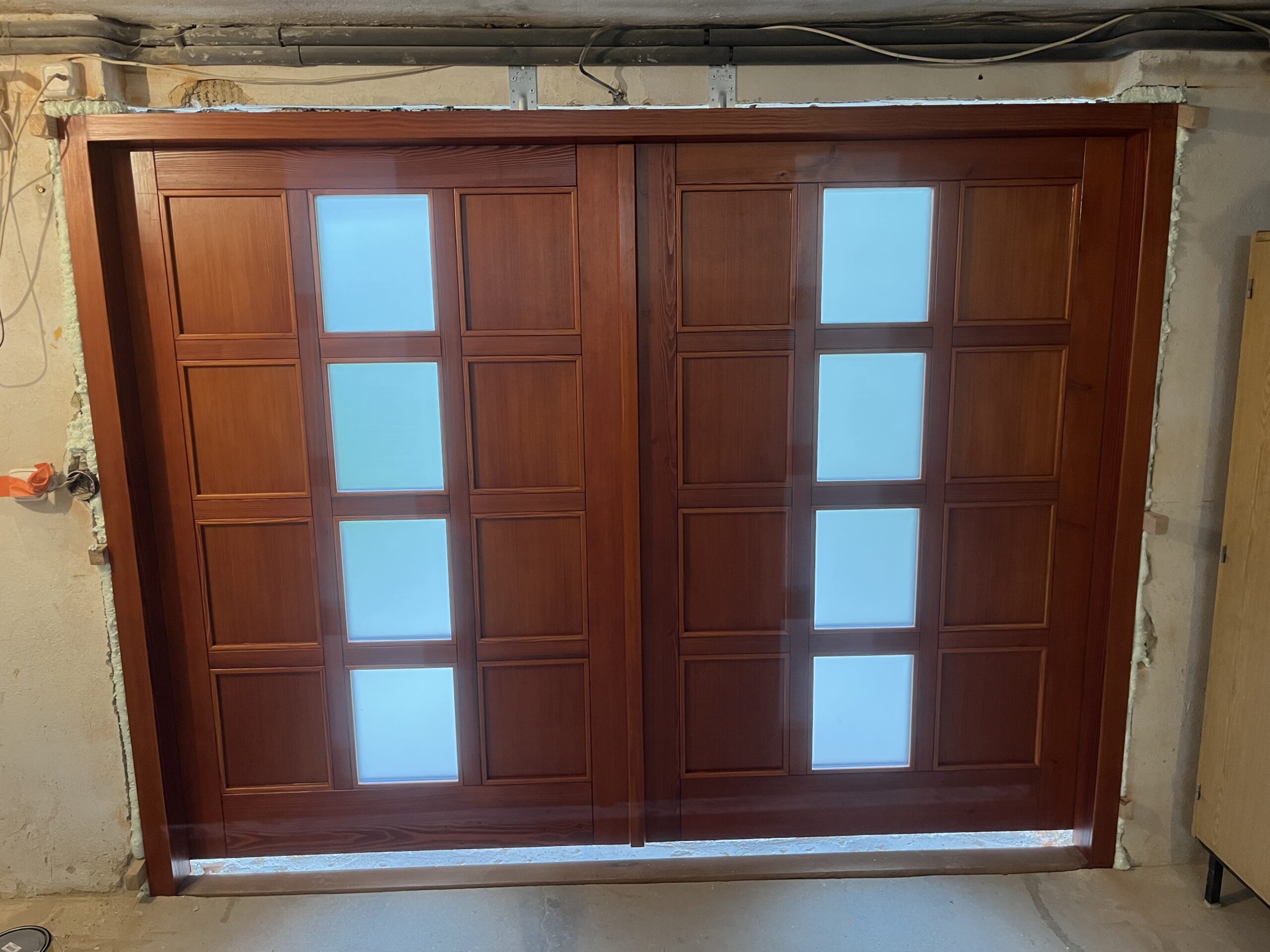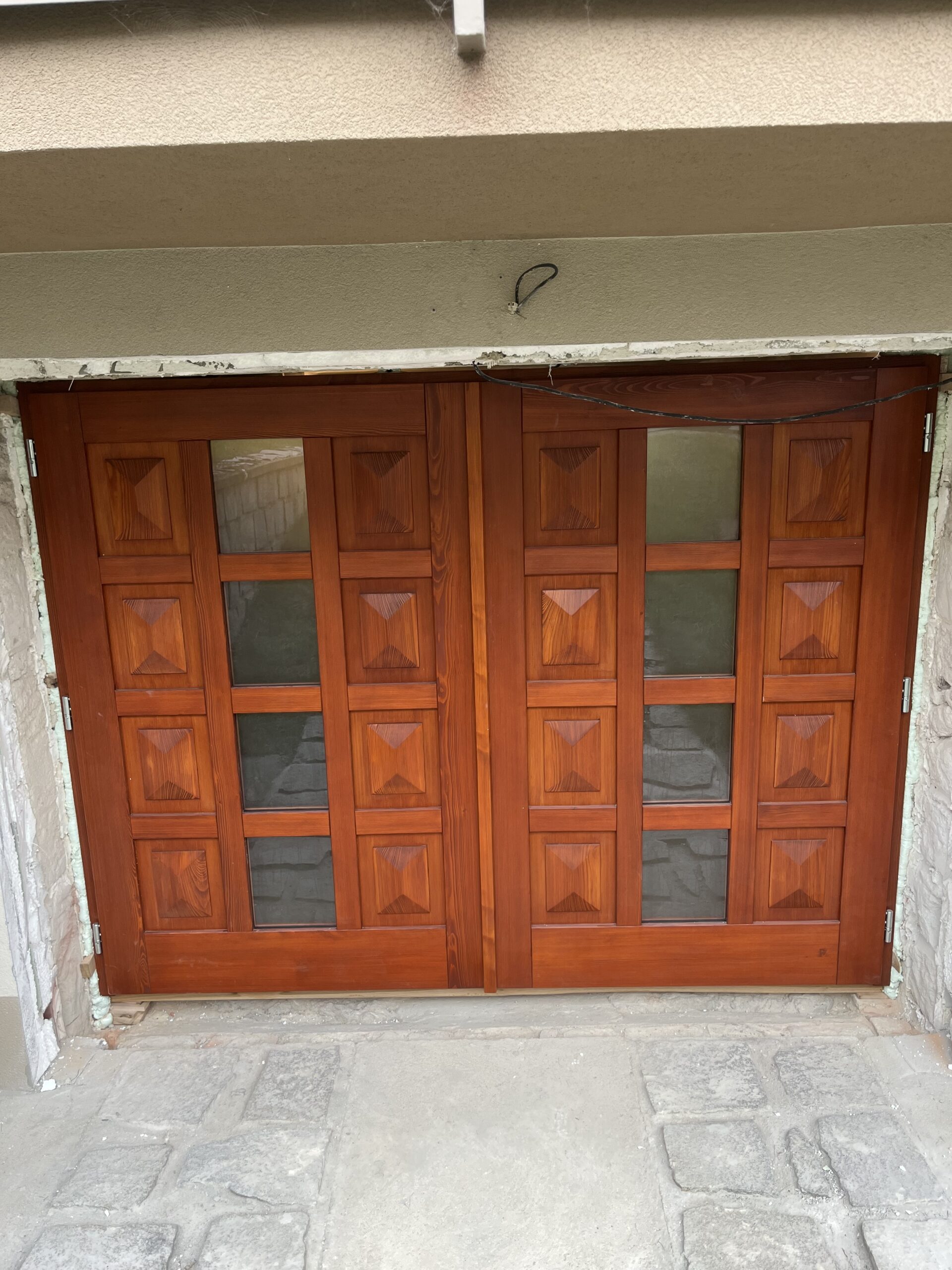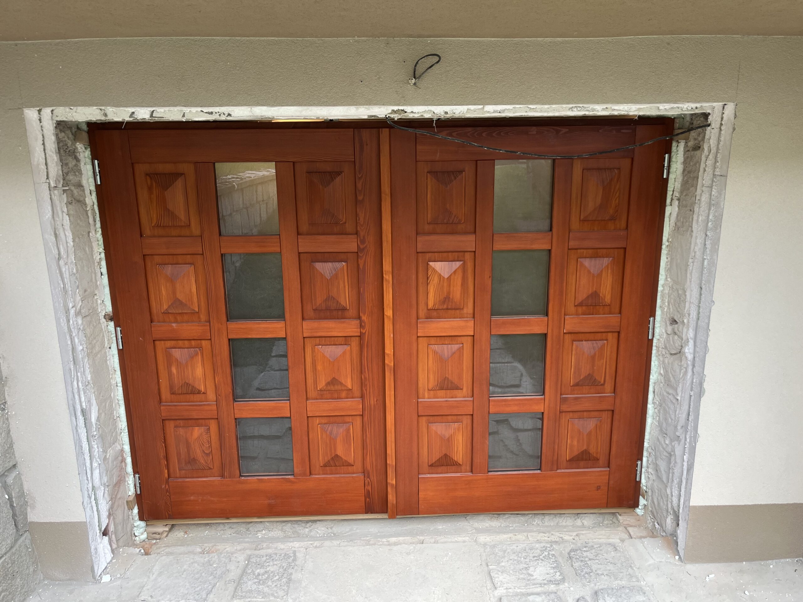 Dvoukřídla dubová vrata s nadsvětlíkem